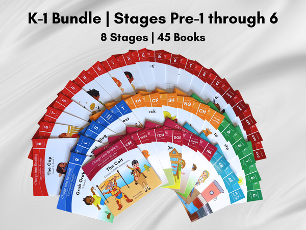 Whether you're a parent or a teacher, the Charge into Reading Decodable Books are the perfect tool to get your little one reading. Each stage of reading includes one copy of each title.