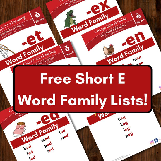 Download your short E word family lists here!Help your little one practice their short E words with these Short E Word Family Lists!
