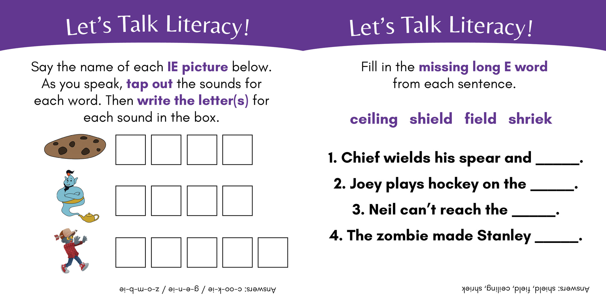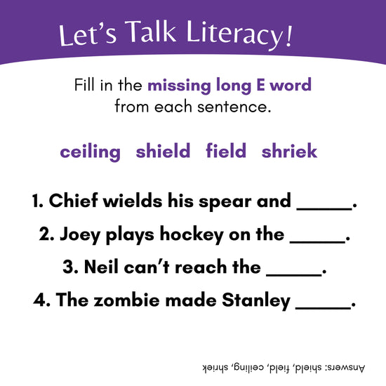 The Shield focuses on long E advanced spelling patterns, introducing 27 new IE, EY, EI, EAR, EER, and IER words.