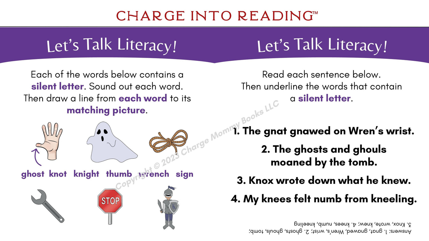 The Knoll focuses on silent letters, introducing 22 new GH, GN, KN, MB, and WR words.