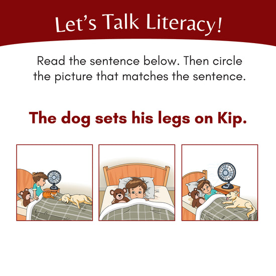 Decoding text is an important part of comprehension. That means asking a child to read a sentence without any visual cues and then asking them what it said. Offering several similar pictures to match a sentence allows readers to test actual comprehension of the text.
