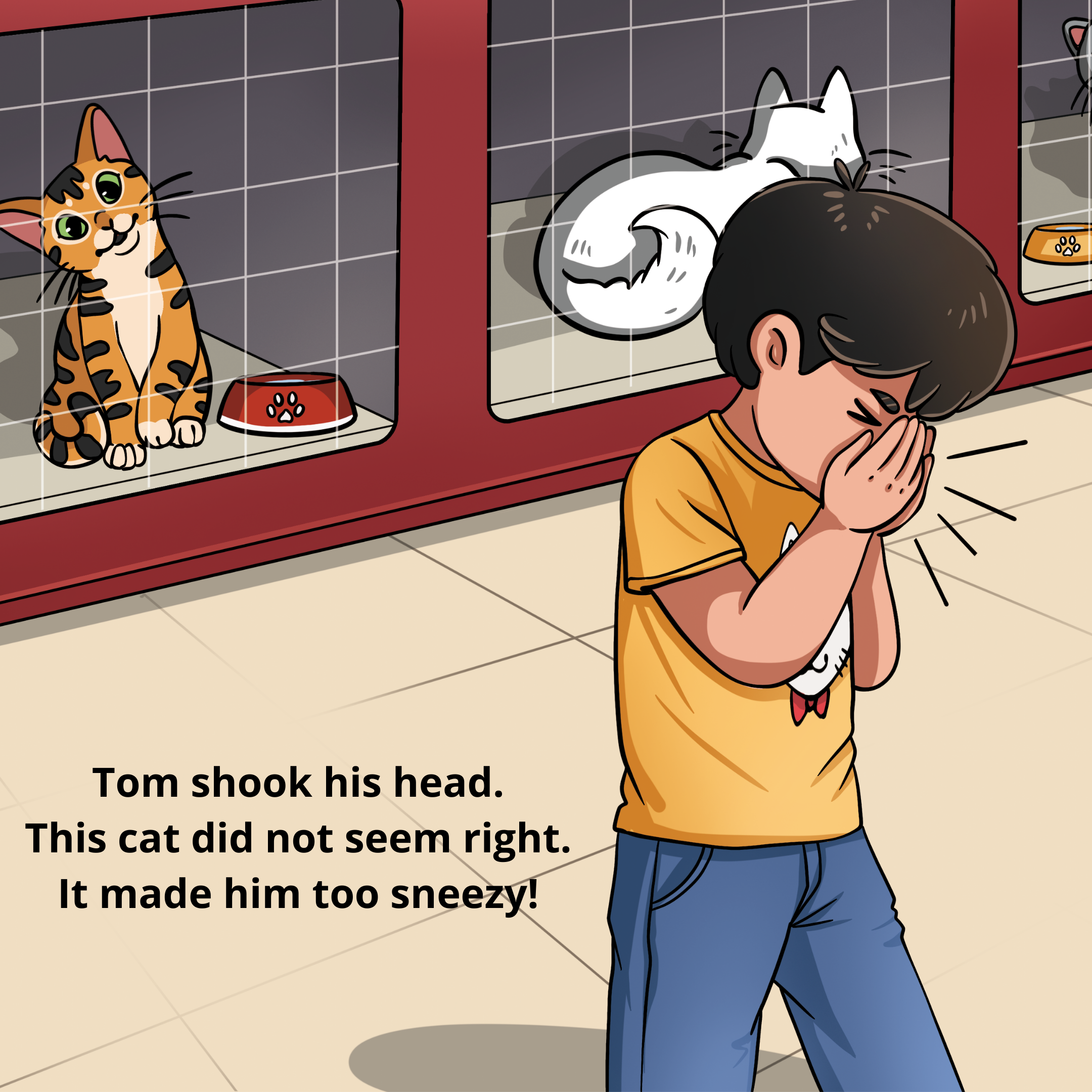 Today is Tom’s big day: the day he gets to pick a pet of his very own. But as Tom looks around the pet store, he begins to worry: what if he can’t find the right pet? Join in the adventure as Tom meets a bird that’s too loud, a cat that makes him too sneezy, a snake that’s too squeezy, and a dog that’s WAY too big. With so many wrong animals, can Tom ever find his right one?