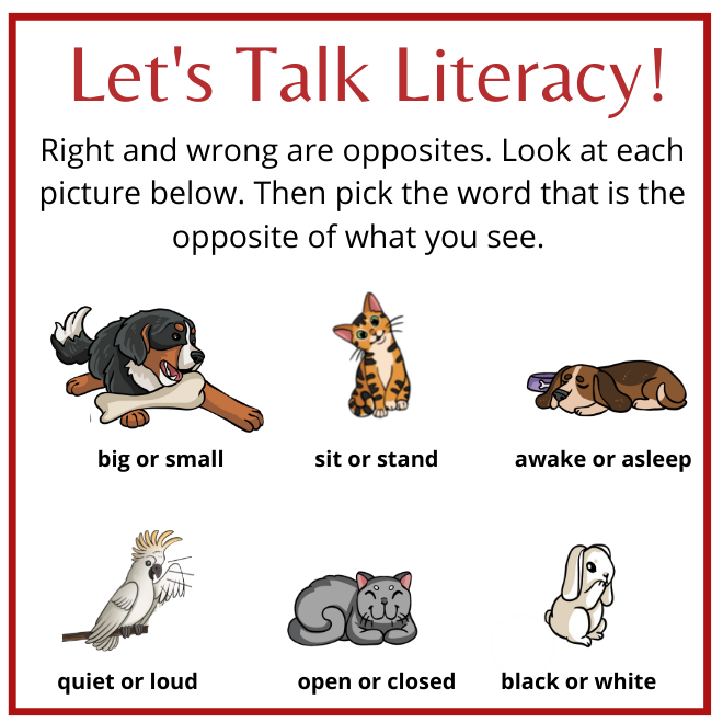 Learning about opposites teaches children to compare two things. It encourages them to look at what is the same and what is different, and to understand what specifically it is that MAKES an item different.