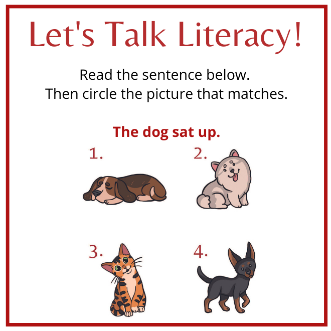 Decoding text is an important part of reading comprehension. That means asking a child to read a sentence without any visual cues and then asking them what it said or what it meant.