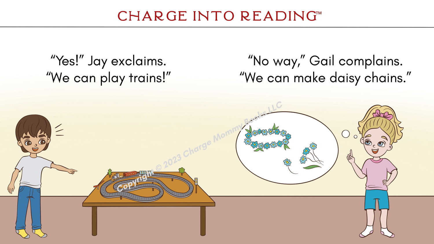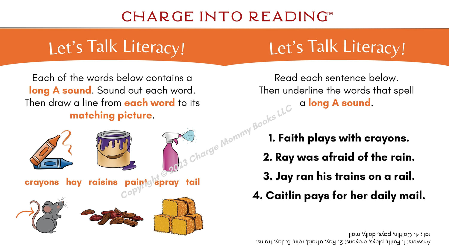 AI and AY words in this story: braids, chains, complains, daisy, exclaims, explains, fail, Faith, Gail, hallway, hurray, Jay, mailman, maybe, pain, paint, play, playdate, rain, spray, stay, sway, today, trains, wails, waist, wait, waits, way, waylaid, yay
